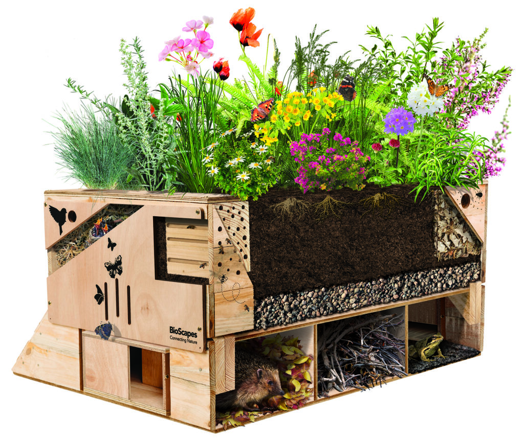 BioScapes® offers a range of specialist planters that contain houses for hedgehogs, butterflies, bees and more. They have been designed to quickly boost biodiversity in any residential, educational, community or commercial setting.